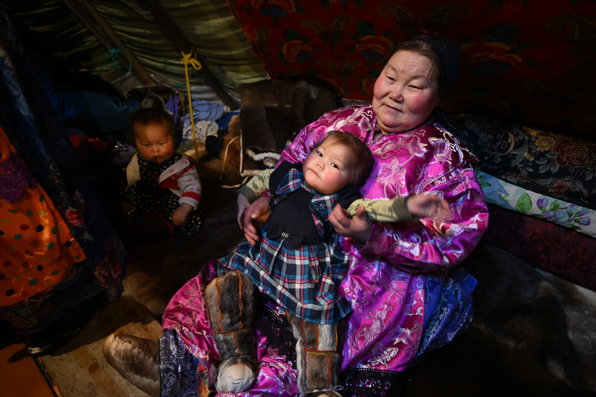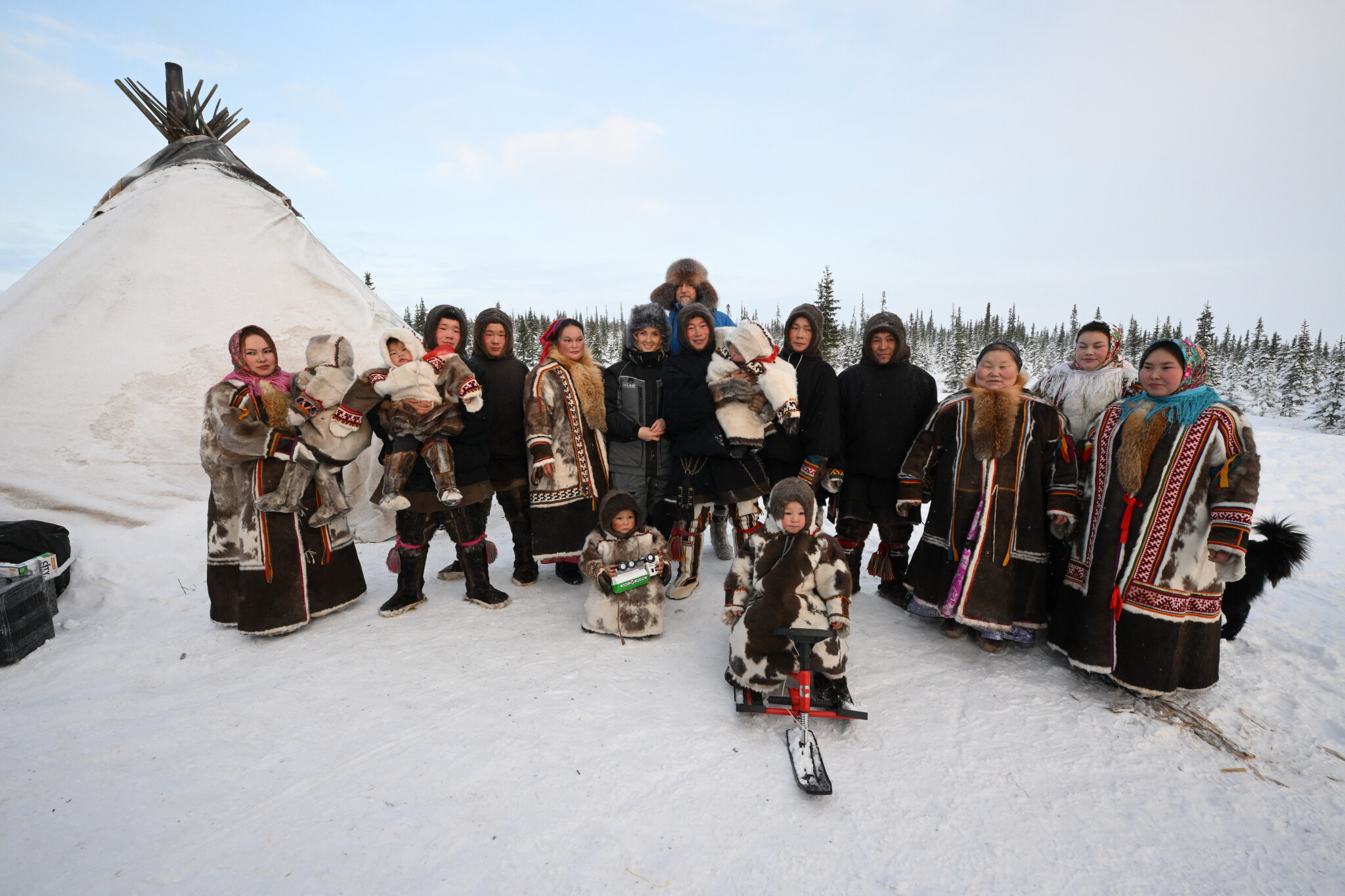 Детский правозащитник и глава региона посетили Сельскохозяйственный производственный кооператив «Рассвет Севера», где познакомились с семьей Лаптандеров. В семье, которая живет в тундре, воспитывается 10 детей и 10 внуков. Уполномоченный пообщалась с членами семьи и узнала об их традициях.