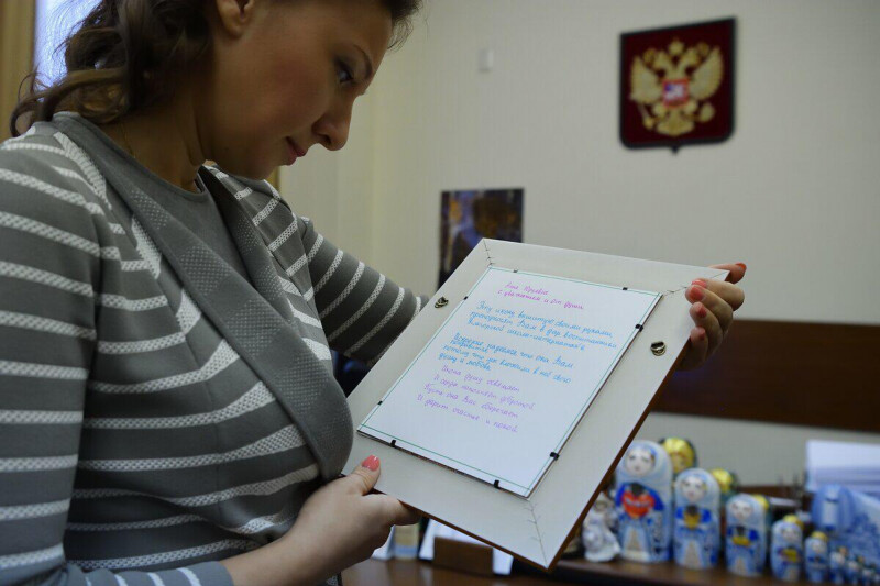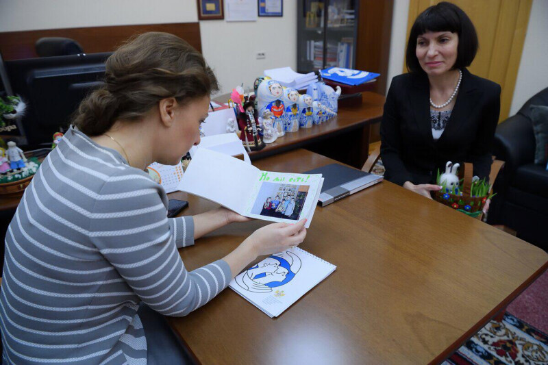 Также советник Главы ДНР передала Анне Кузнецовой подарки от воспитанников Углегорской школы-интерната – дети вышили для детского омбудсмена икону и сделали своими руками альбом о своей жизни. Ребята рассказали в письме о том, как пережили войну, как был разрушен, а потом восстановлен их интернат.