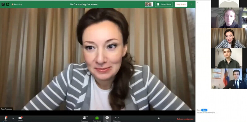 Анна Кузнецова провела встречу в онлайн-формате с участниками Детских общественных советов при уполномоченных по правам ребенка, которая была приурочена к Международному дню защиты детей.