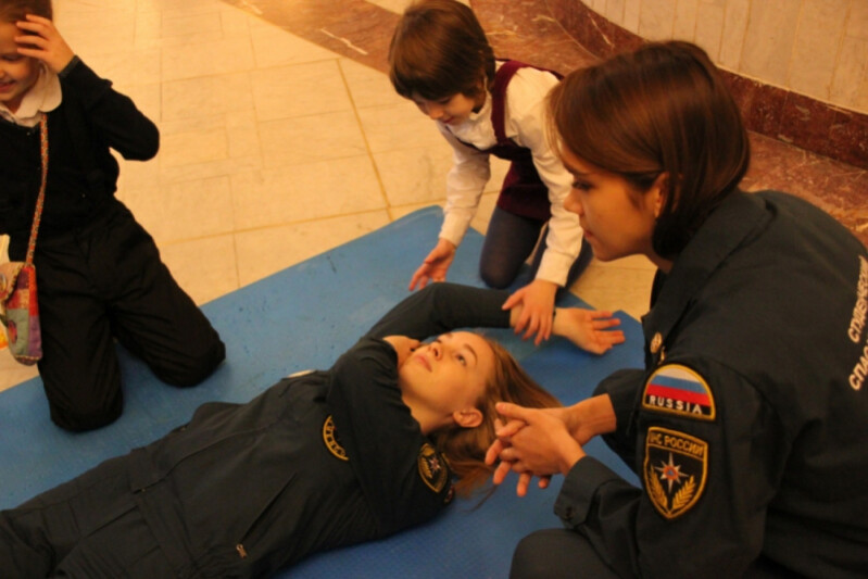 В это время в фойе была организована выставка пожарно-спасательного оборудования, студенты-волонтеры отряда «SALUS» провели мастер-класс по оказанию первой помощи пострадавшим от пожара: продемонстрировали отработку искусственного дыхания.
