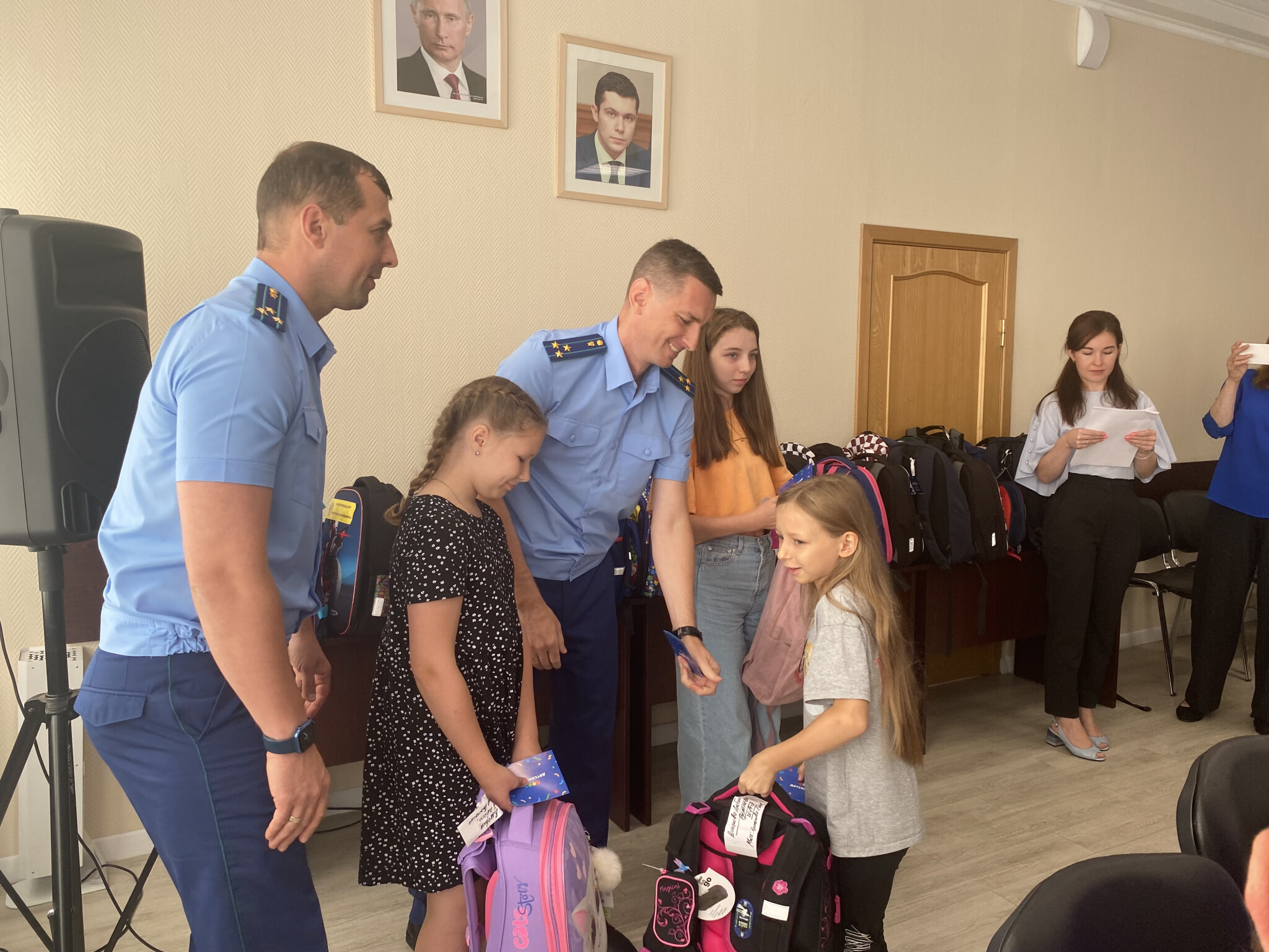 Сегодня в рамках ежегодной акции Уполномоченного по правам ребенка в Калининградской области «Портфель школьника» состоялось торжественное вручение 38 школьных портфелей с набором принадлежностей, семьям с детьми военнослужащих, исполняющих свой долг в зоне специальной военной операции (СВО).