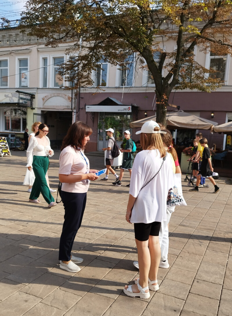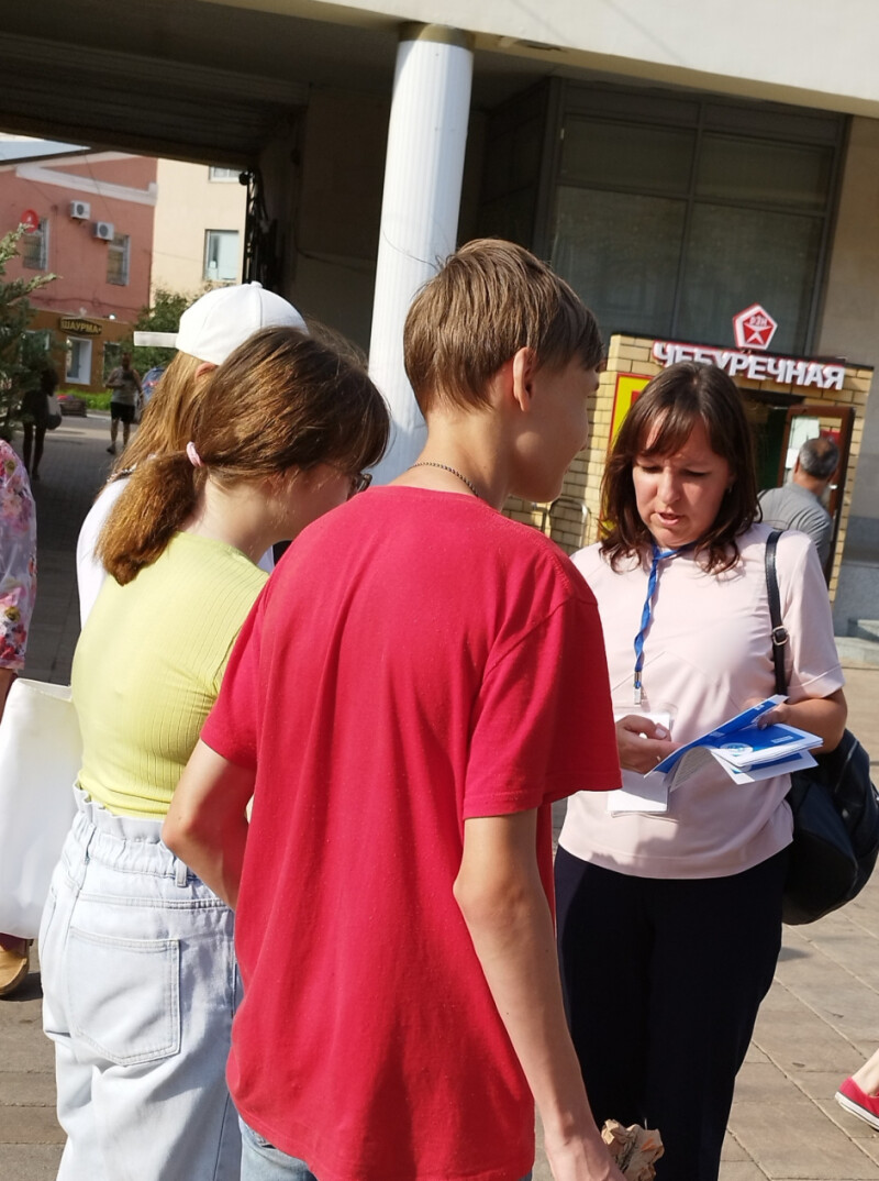 В рамках Всероссийской уличной акции «Дарю тепло» команда Уполномоченного по правам ребёнка в Рязанской области с 8 по 10 августа организовала информирование подростков о том, как и где в летнее время можно с пользой и интересно провести время.