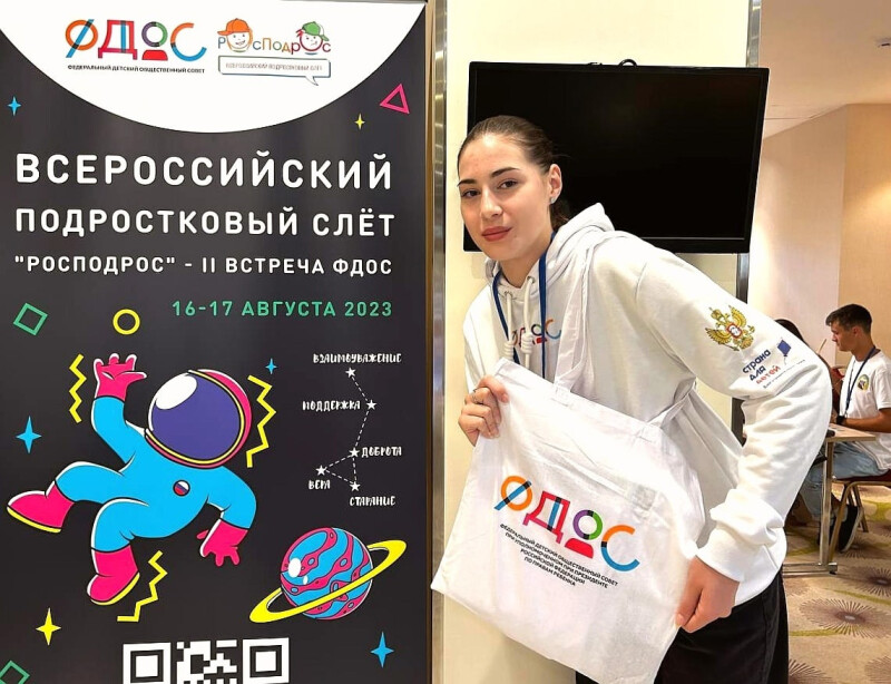 С 15 по 18 августа 2023 года в Москве проходит Всероссийский подростковый слет "РосПодрос", где Анна Маркушева и Ани Авагимян представляют делигацию от Республики Адыгея.
