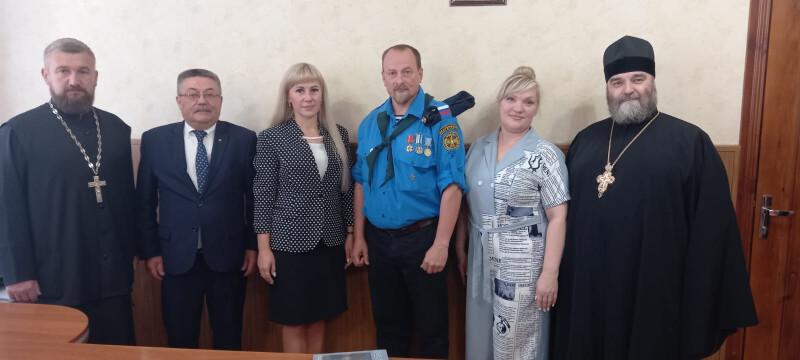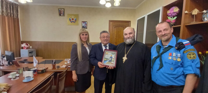 Свердловский Уполномоченный вручил Архимандриту Тихону икону, переданную Митрополитом Екатеринбургским и Верхотурским Евгением, а в ответ получил его благословение на дальнейшее проведение такого важного, в том числе с точки зрения патриотического воспитания молодежи, мероприятия как сборы «Княжества».