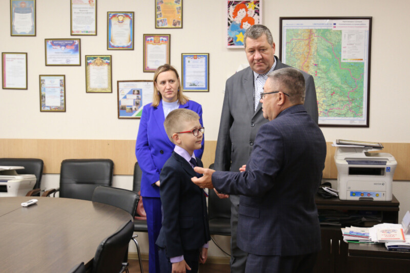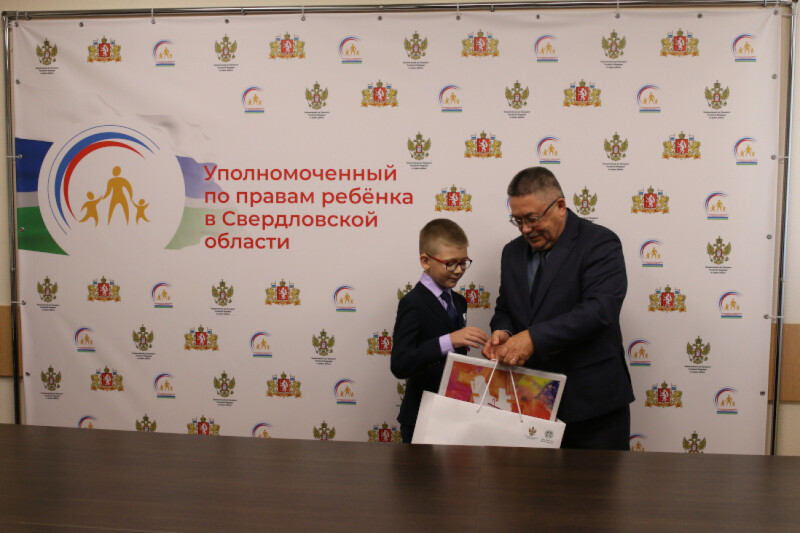 Шестого сентября Уполномоченный по правам ребенка в Свердловской области Игорь Мороков по поручению Уполномоченного при Президенте РФ по правам ребенка Марии Львовой-Беловой вручил памятные подарки ученику Гимназии №49 г. Екатеринбурга Сергею Данилюку.