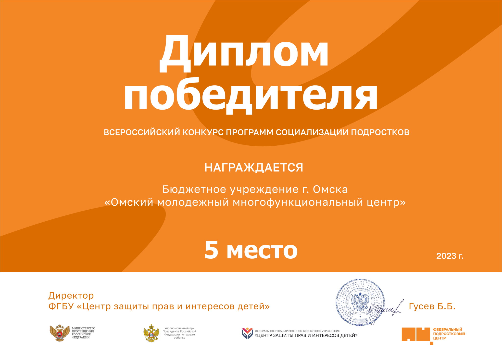 Диплом победителя получил БУ г. Омска "Омский молодежный многофункциональный центр" со своей программой "Вектор"!