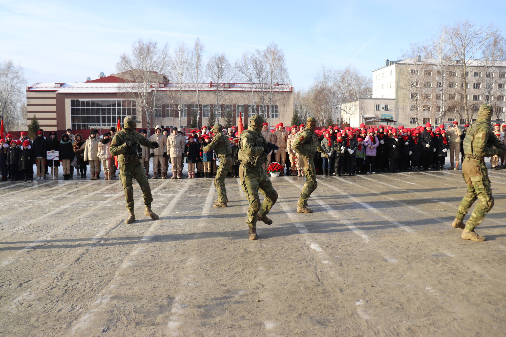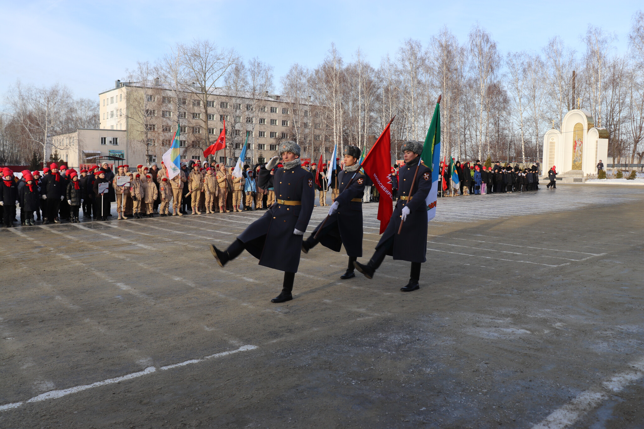 В Новосибирском военном институте Росгвардии 340 школьников Новосибирского района Новосибирской области, вступая в ряды «Юнармии», произнесли торжественную клятву, пообещав следовать традициям доблести, отваги и товарищеской взаимовыручки, чтить память героев, сражавшихся за родину, быть достойными гражданами России.