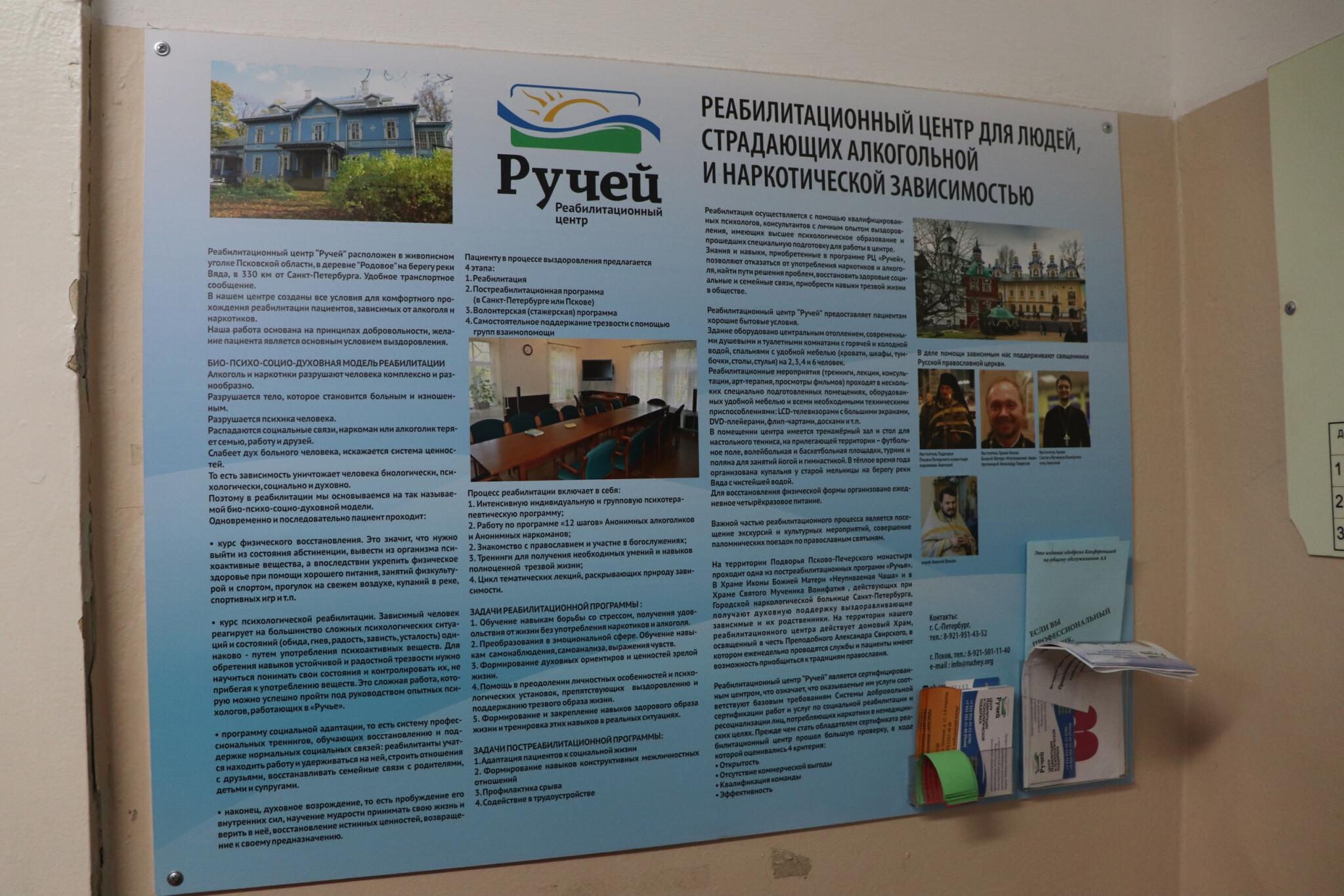 По желанию граждан, имеющих различные виды зависимостей, они могут быть направлены в реабилитационный центр «Ручей» Псковской области. Центр предлагает добровольную, анонимную, немедикаментозную, длительную реабилитацию.