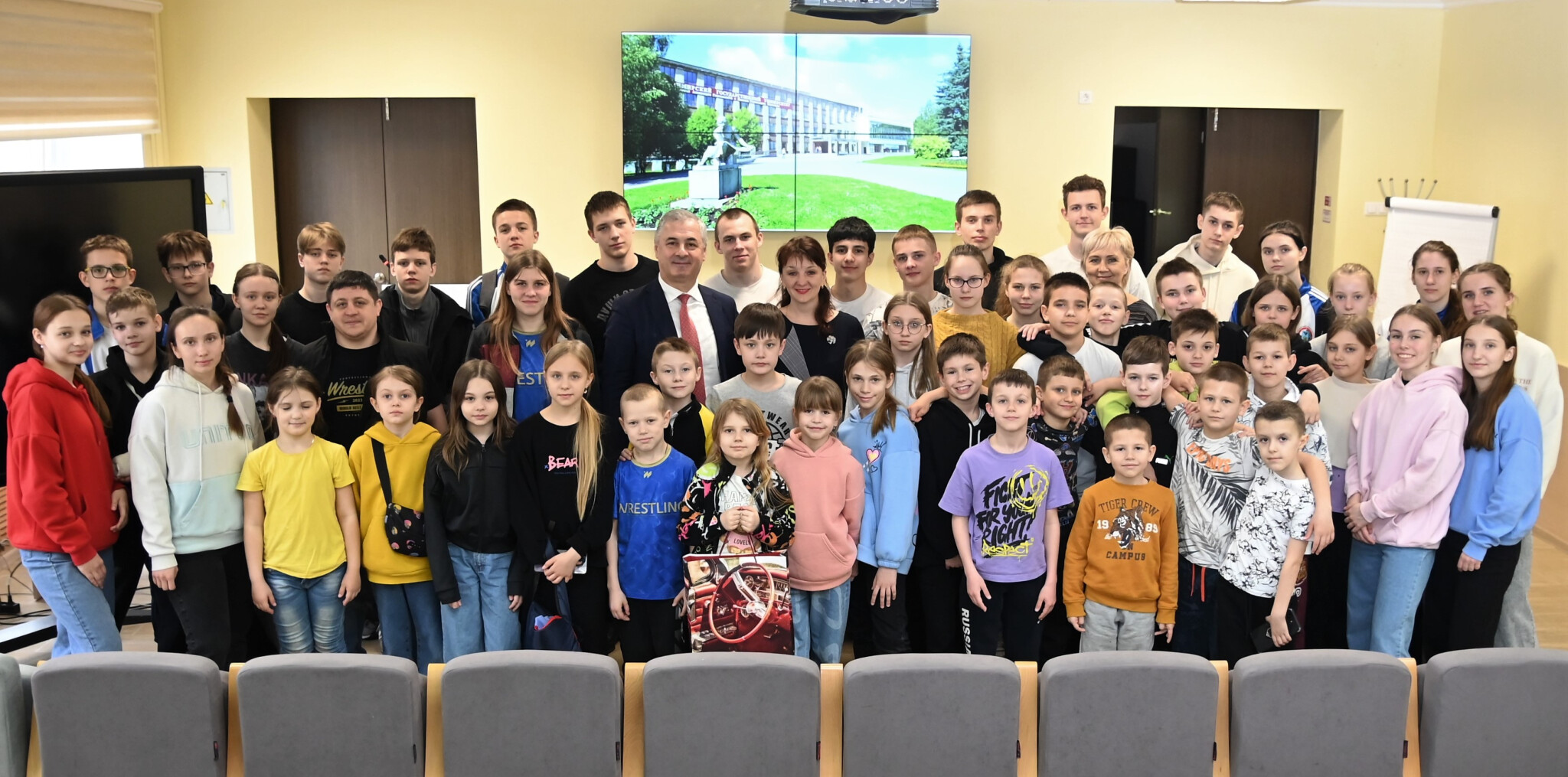 Уполномоченный по правам ребёнка во Владимирской области Юлия Раснянская вместе с ректором ВлГУ Анзором Саралидзе встретились с детьми из Белгородской области.