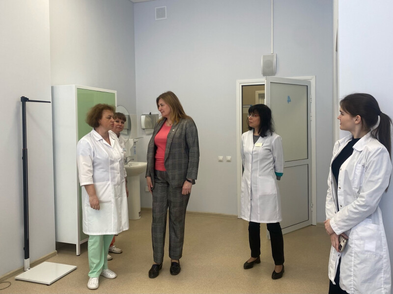 Заведующая детским городским консультативно-диагностическим центром Князева Ирина Владимировна, заместитель главного врача по медицинской части Морокина Наталья Вячеславовна и старшая медицинская сестра Феклинова Наталья Владимировна показали детскому омбудсмену кабинеты и рассказали о направлениях работы Центра.