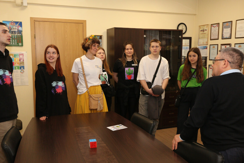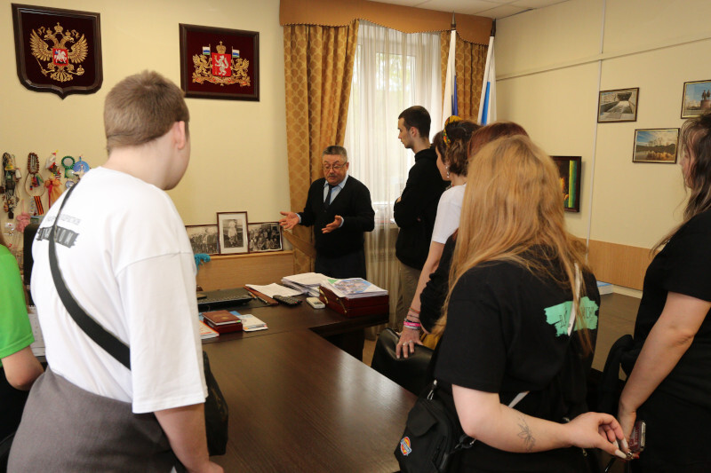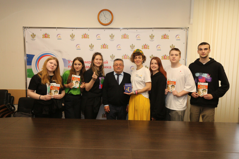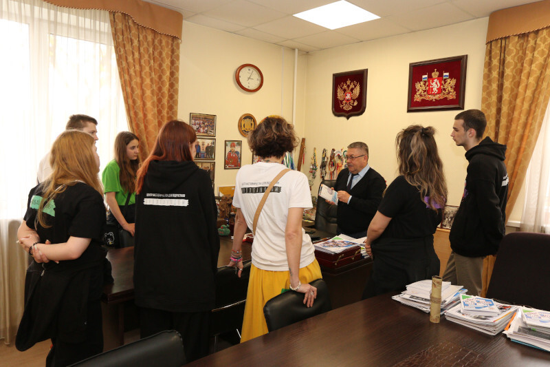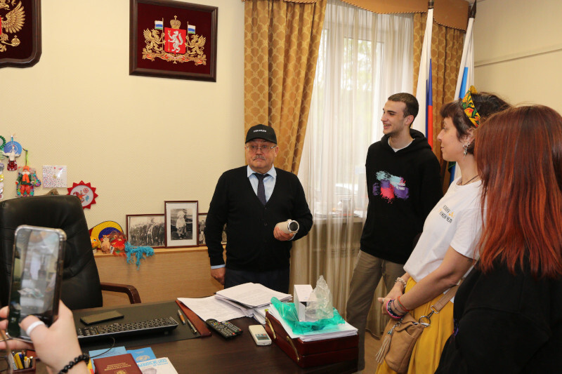 Уполномоченный Игорь Мороков поприветствовал членов делегации у себя в Аппарате, рассказал ребятам о своей деятельности, провел небольшую экскурсию по своему рабочему кабинету, обсудил с ними деятельность их организации – центра наставничества для подростков «Хулиганодом», а также обменялся со своими гостями небольшими памятными подарками.