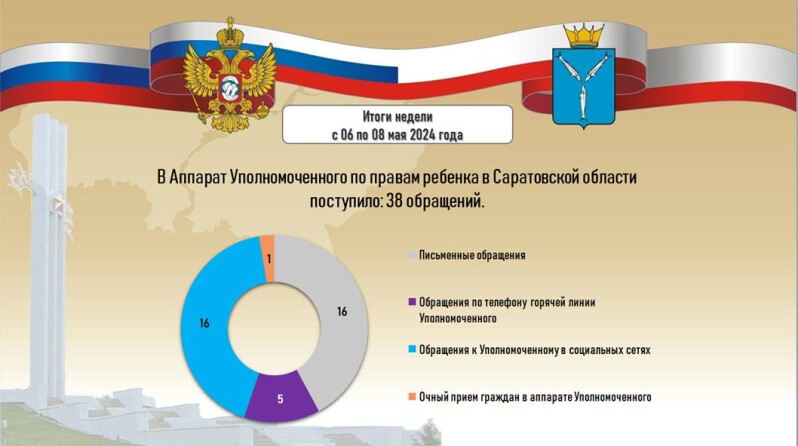 В аппарат Уполномоченного по правам ребенка в Саратовской области поступил 38 обращений.