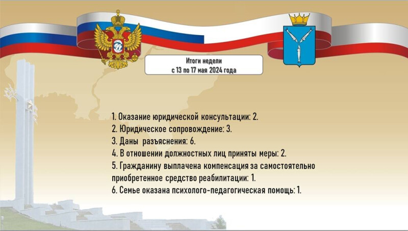 Итоги работ ы с 13 по 17 мая 2024 года