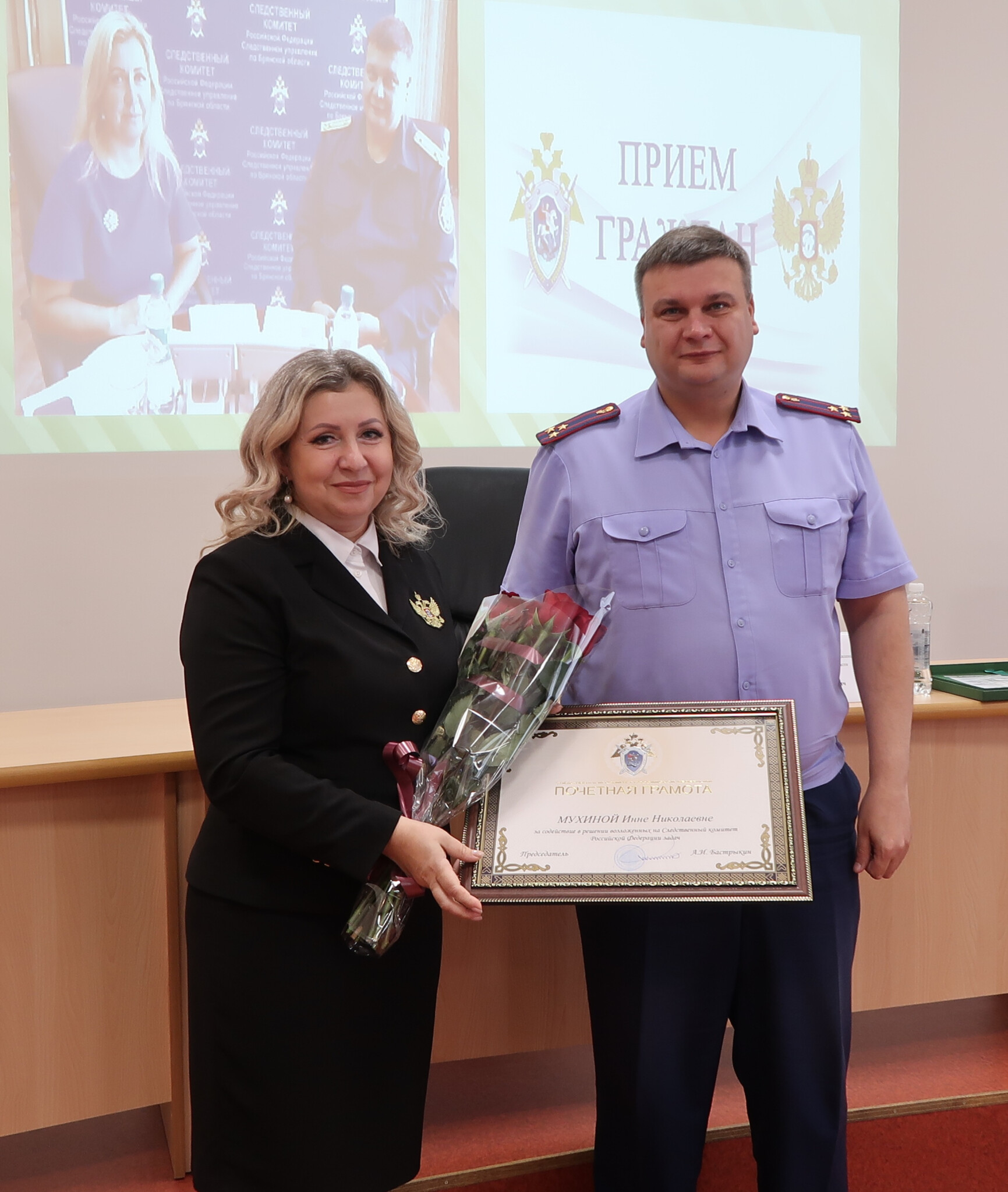 В заверении мероприятия руководитель СУ СК России по Брянской области Максим Лукичев вручил Уполномоченному по правам ребенка Почетную грамоту за подписью руководителя Следственного комитета Российской Федерации Александра Бастрыкина за безупречную и эффективную службу, достижения в правозащитной деятельности, выполнение заданий особой важности и сложности.
