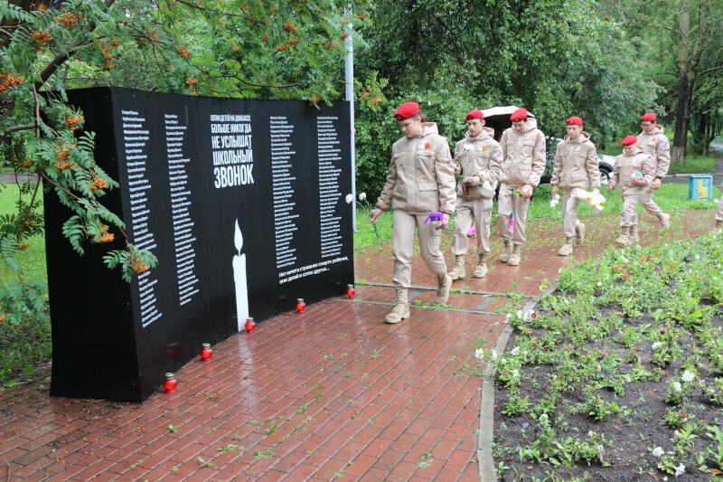 В рамках мероприятия участники почтили память погибших детей минутой молчания, затем ведущие зачитали краткие биографии, погибших ребят, после чего к мемориалу возложили цветы и игрушки, а юнармейцы Екатеринбурга выпустили в небо белых голубей, которые являются символом невинной детской души.