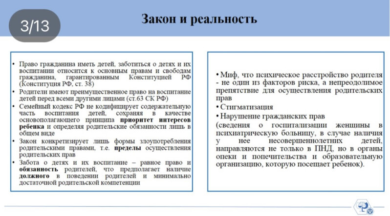 Мероприятие «Реализация родительских прав и обязанностей лицами с ментальными особенностями и психическими заболеваниями. Проблемы. Пути решения» состоялось 30 июля 2024 года в 13:00 по московскому времени.