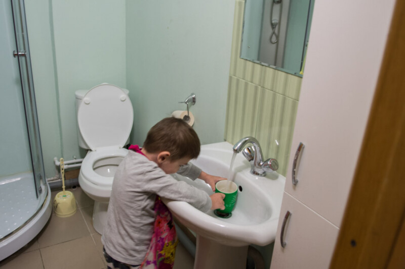 Тем временем малыш попил чай и отправился мыть чашку. Закончив хозяйственные дела, он прихватил медведя и пригласил гостью в свою комнату. Несмотря на легкую форму ДЦП, перемещается Боря стремительно и достаточно ловко. Но случается, конечно, что и упадет. А когда ему пытаются помочь подняться, произносит сакраментальное: я сам!