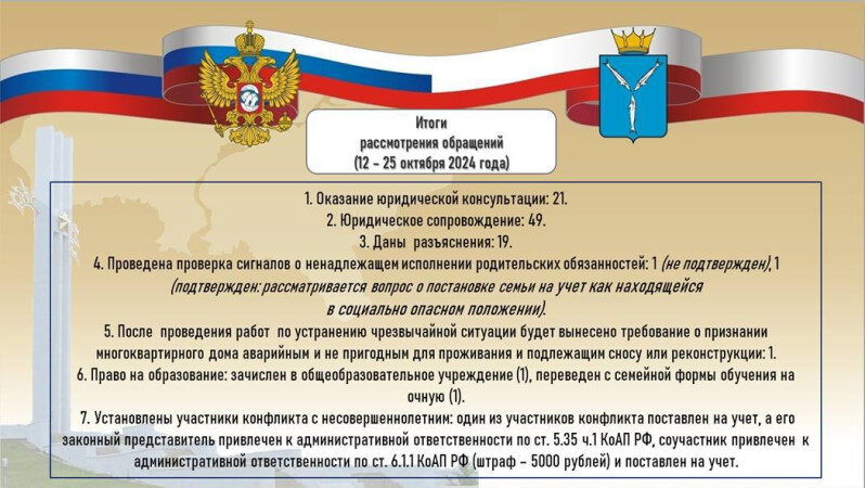 Итоги работы с 12 по 25 октября 2024 года