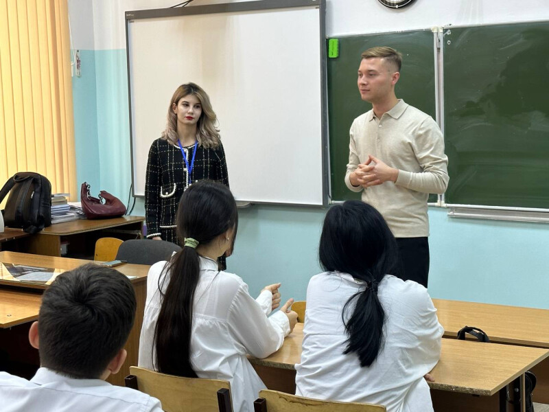 В рамках акции сотрудники аппарата вместе со студентами провели тематический урок для учеников 8 класса МОАУ "СОШ № 38" г. Оренбурга. Ребята узнали о многогранности России, об истории праздника, известных личностях и датах, а также проверили полученные знания в ходе викторины.