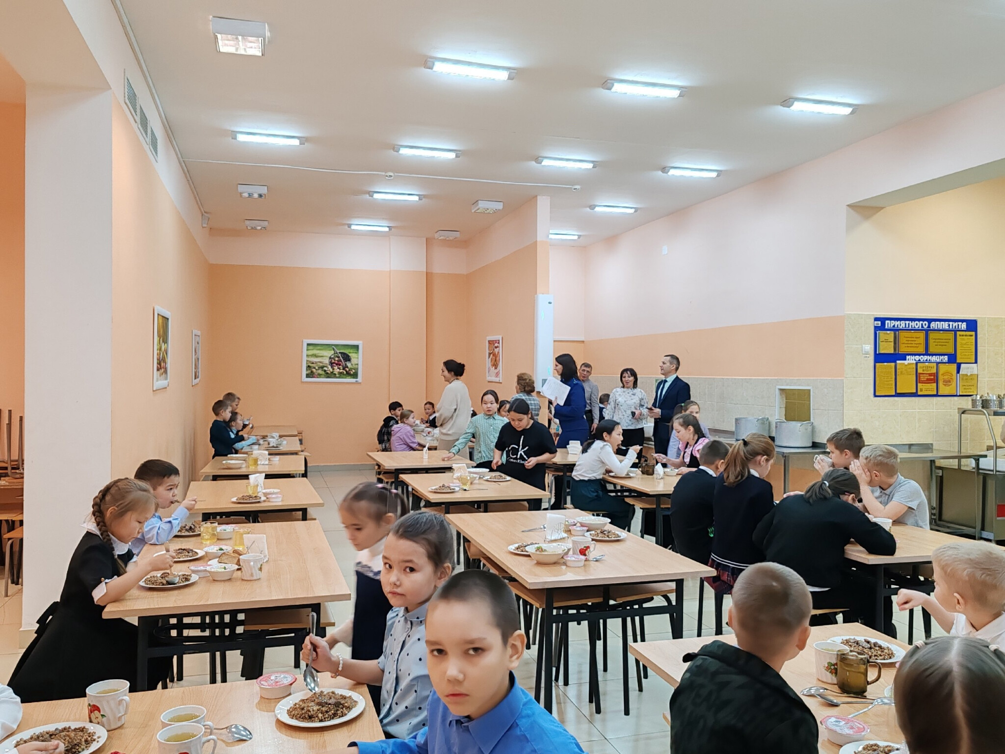 Также была проверена школьная столовая. Побеседовала с детьми. Как обычно, кто-то ест с удовольствием, а кто-то едва притрагивается к еде. Жалко смотреть, как в отходы идут ценные продукты. Питание предоставляется в достаточном количестве и подается в горячем виде.