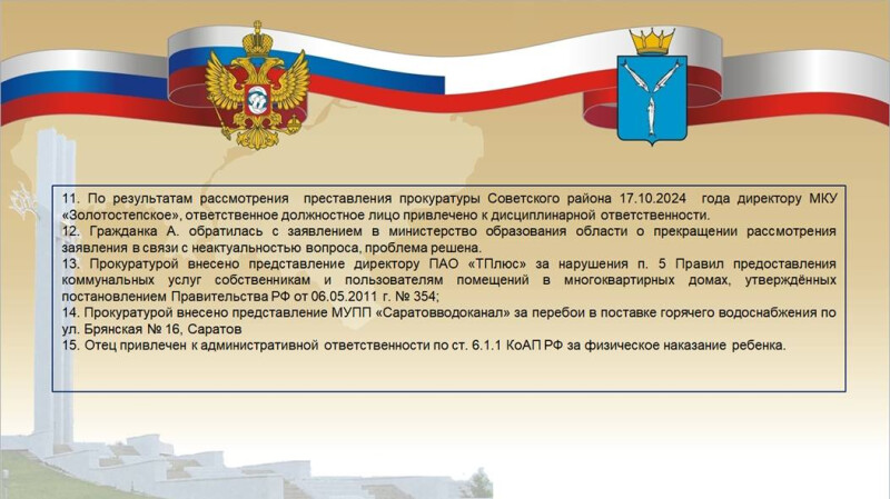 Итоги рассмотрения обращений 11-29 ноября 2024 года