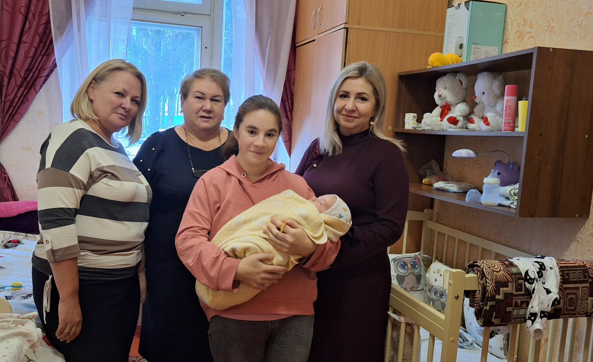 «В учреждении на постинтернатном сопровождении находится Варечка, которая месяц назад родила Тимошу. Сотрудники Центра помогают молодой мамочке справляться с обязанностями по уходу за малышом: выделена отдельная комната, созданы условия для сна, пеленания, кормления, купания ребенка. Варя получает первый опыт заботы о ребенке, поэтому персонал Центра оказывает ей необходимую поддержку.