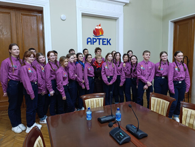 По артековской традиции Уполномоченному повязали артековский галстук и сделали фотографию на память.