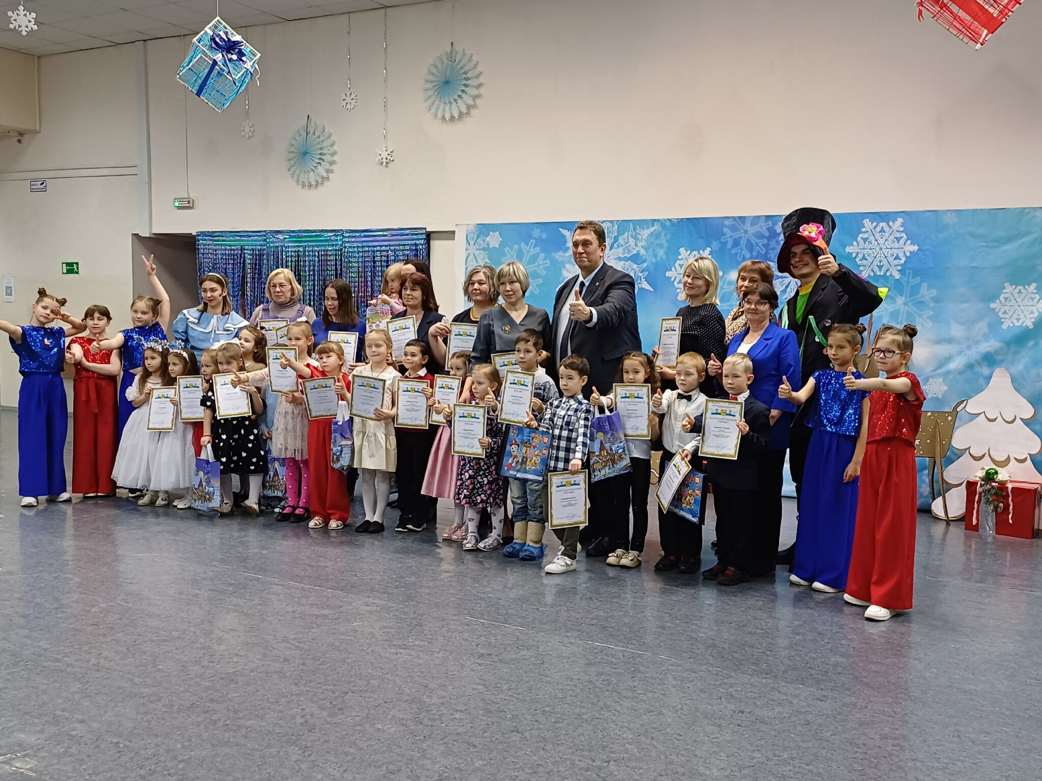 Конкурсной комиссией были выбраны 30 лучших работ. Владимир Шабардин наградил победителей конкурса благодарственными письмами и призами, также были награждены педагоги. Для детей была организована концертная программа с интерактивами от веселых ведущих.