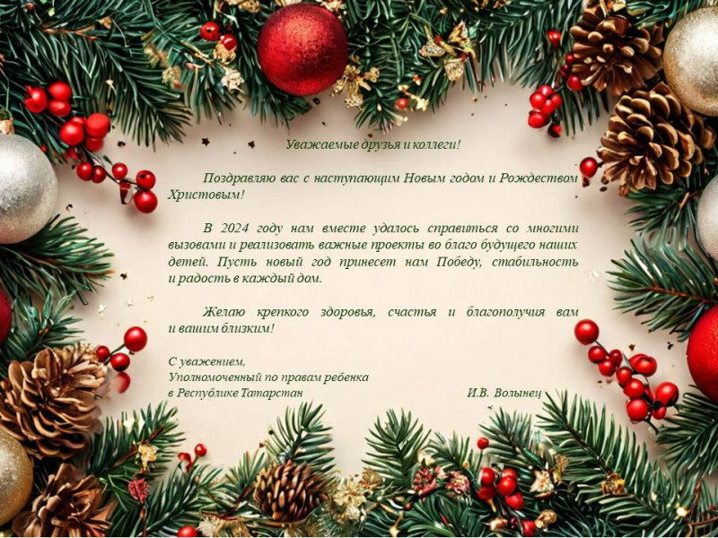 С наступающим Новым годом! Уполномоченный по правам ребенка в Республике Татарстан подготовил поздравление.