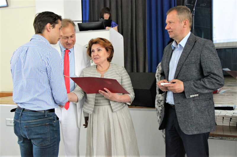 Надежда Болтенко вручила дипломы с отличием выпускникам педиатрического факультета, а также наградила выпускника НГМУ Глеба Карповича сертификатом и золотой медалью «За выдающиеся успехи в учебе».