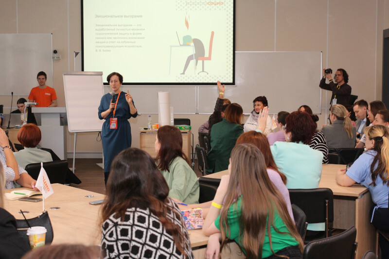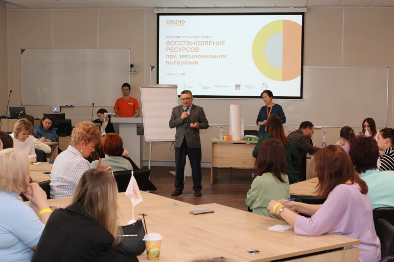 На следующий день по инициативе Игоря Морокова в рамках форума прошел психологический тренинг «Восстановление ресурсов при эмоциональном выгорании», в котором участвовало около 70 человек, организованный руководителем отдела экстренной психологической помощи детям и молодежи Центра социально-психологической помощи детям и молодежи «Форпост» Галиной Деминой.