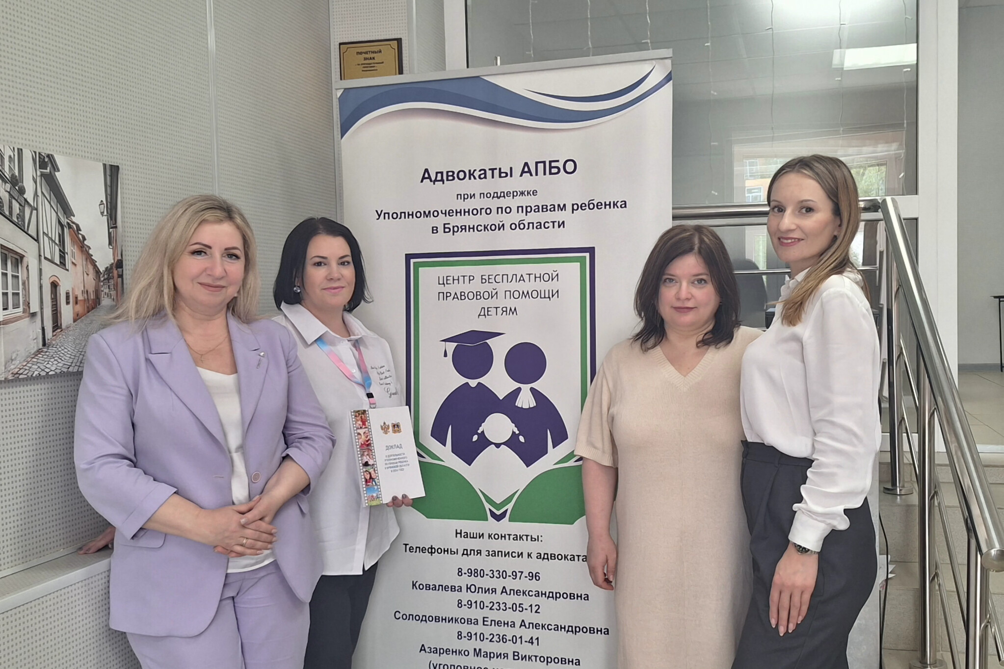 Почти 2 года в Брянске работает Центр бесплатной правовой помощи детям. Ежемесячно Уполномоченный по правам ребенка в Брянской области Инна Мухина совместно с адвокатами Адвокатской палаты Брянской области Юлией Ковалевой, Еленой Солодовниковой и Марией Азаренко проводят совместный прием граждан по вопросам защиты детства.