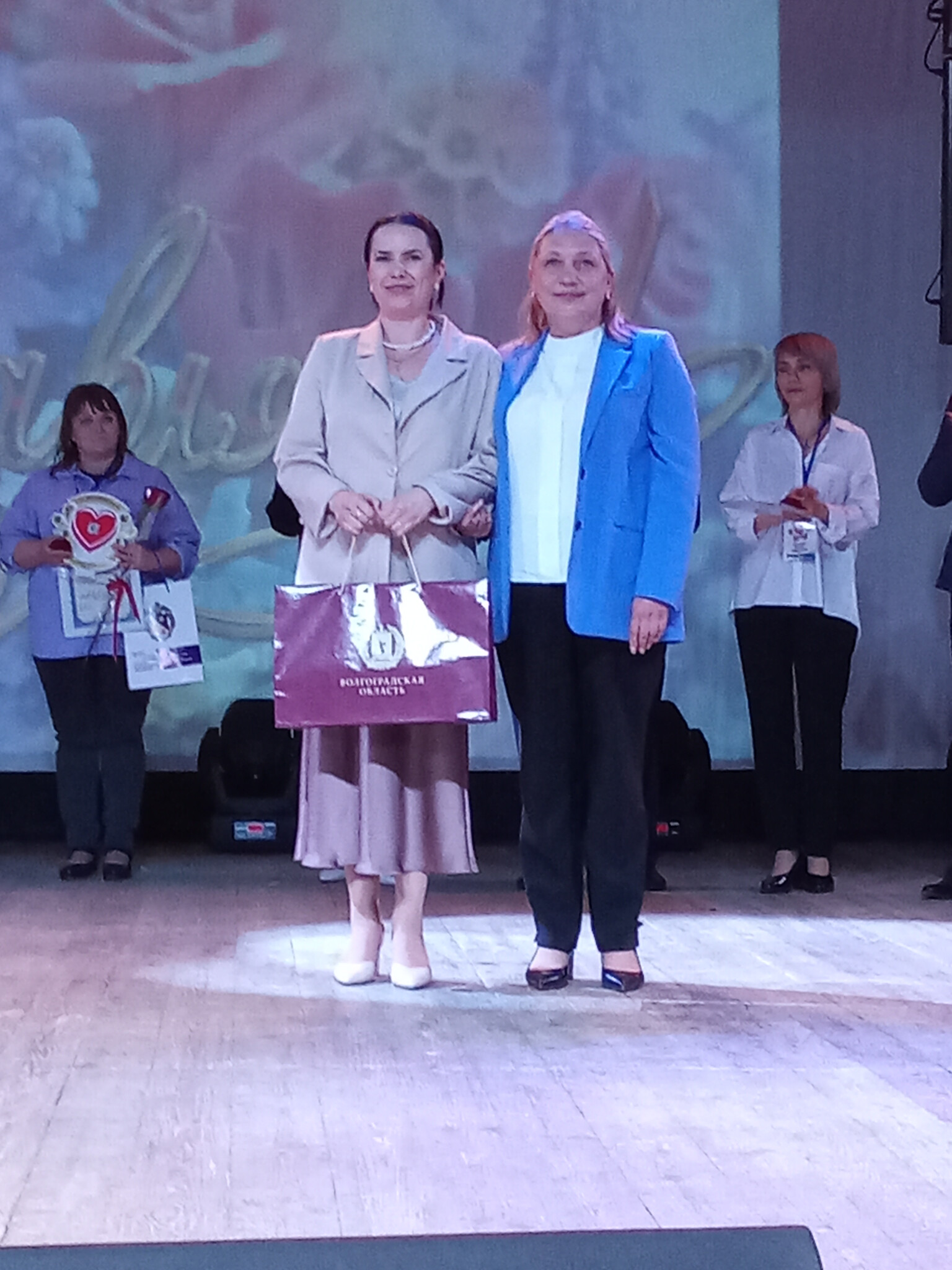 Уполномоченный по правам ребенка Юлия Приклонская приняла участие в церемонии закрытия конкурса и вручила специальный приз Самойленко Ольге, педагогу ДЮЦ Советского района Волгограда, руководителю фольклорного коллектива "Новолетие".