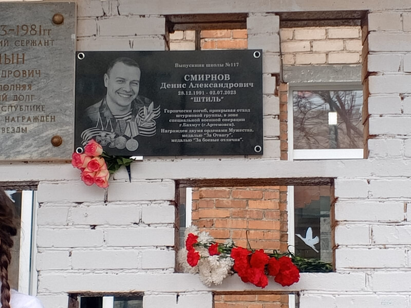 25 апреля в Орджоникидзевском районе Екатеринбурга в школе № 117, прошла торжественная церемония открытия мемориальной доски выпускнику этой школы, пулемётчику, погибшему под Артёмовском в зоне проведения специальной военной операции, Денису Смирнову (позывной «Штиль»).