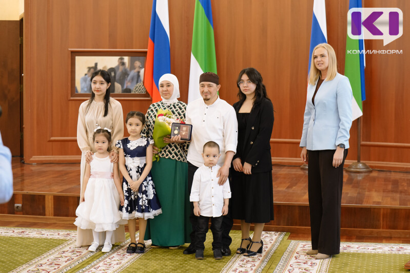 Почетной медалью Республики Коми "За достойное воспитание детей" отмечены три многодетные семьи региона. Так, среди награжденных - семья Шерматова Исы и Таджиевой Барчинай из Воркуты, которая воспитывает пятерых детей, в семье Блохиных из Эжвинского района Сыктывкара растят шестерых детей, а в семье Косныревых из Прилузского района - восьмерых детей.