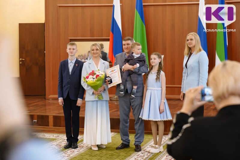 В Международный день семьи в Сыктывкаре прошла торжественная церемония награждения восьми многодетных семей: три семьи получили почетную медаль Коми "За достойное воспитание детей", а пять семей были удостоены премии правительства региона за сохранение традиционных семейных ценностей и достойное воспитание детей.