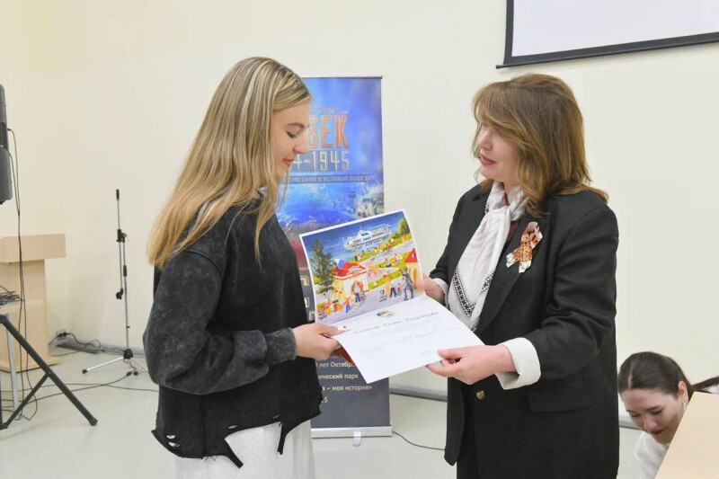 Уполномоченный по правам ребенка в Омской области Елизавета Степкина и Министр труда и социального развития Омской области Ирина Варнавская наградили ребят на площадке исторического мультимедийного парка «Россия — Моя история».