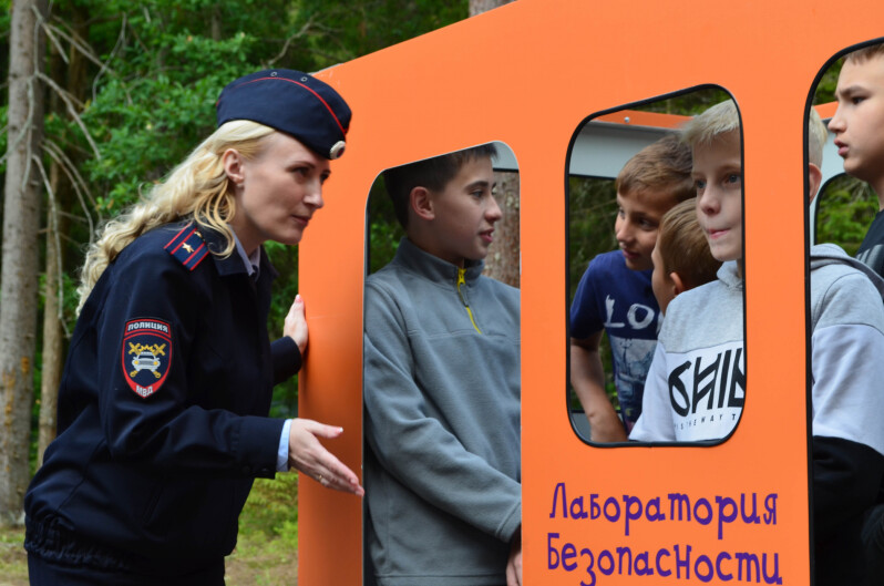 Дорожные полицейские организовали для ребят работу сразу нескольких площадок. Сотрудники Госавтоинспекции провели с детьми занятия по правилам посадки и высадки из автобуса; говорили о вопросах безопасного поведения в местах сбора (остановках) и во время ожидания общественного транспорта, о пользе светоотражателей; каждый ребенок попробовал проехать на самокате по определенному пути, соблюдая правила.