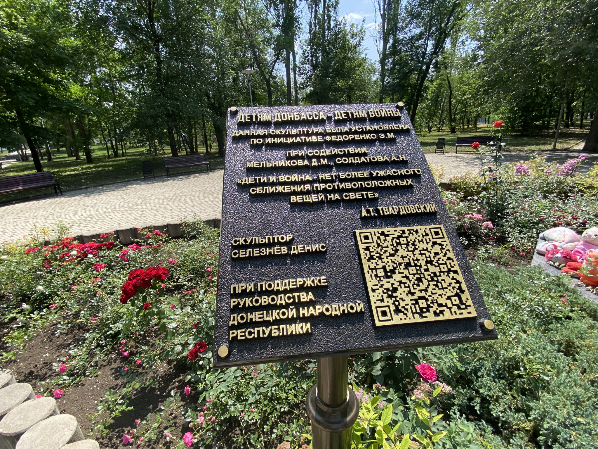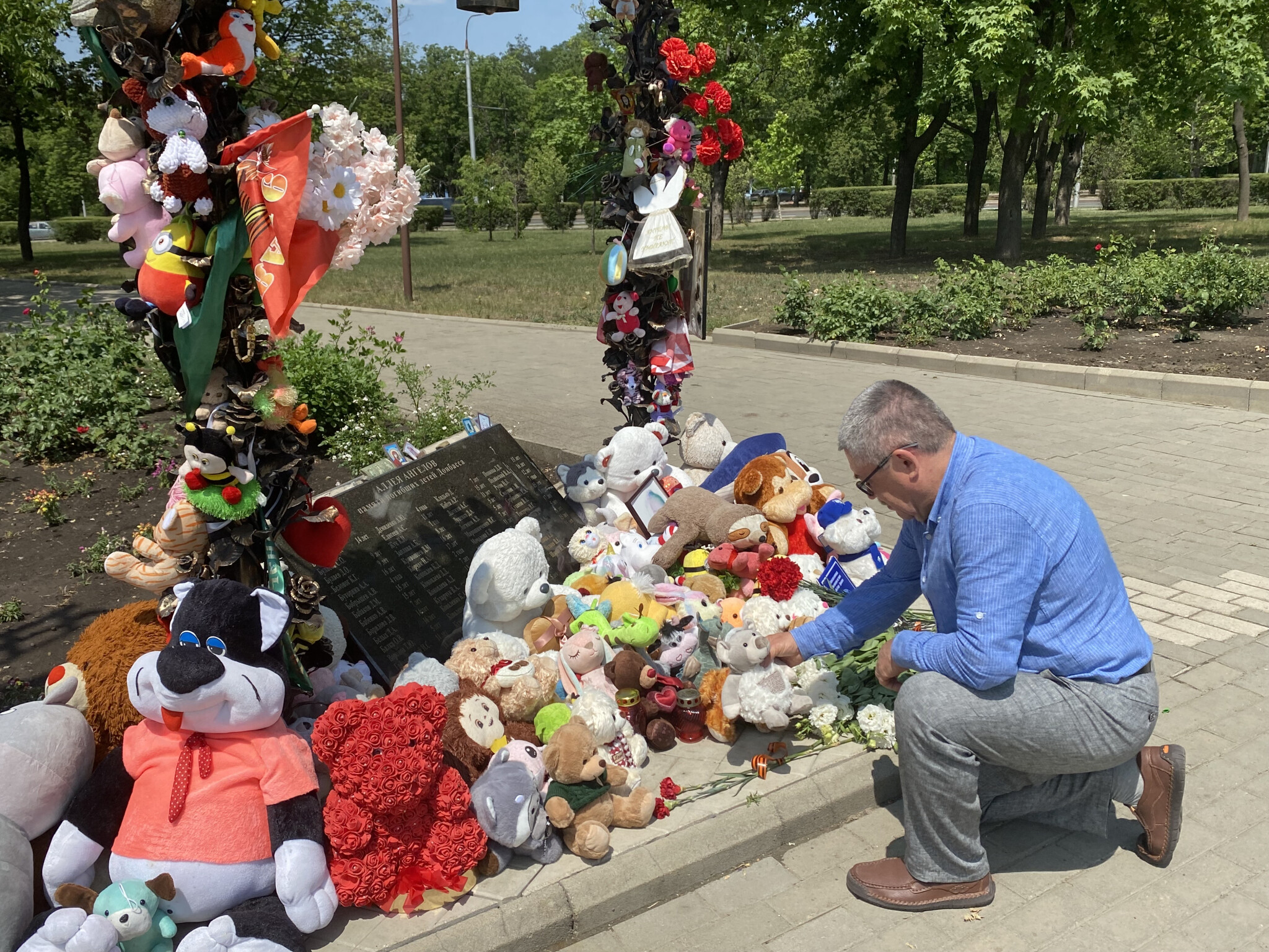 В завершение визита Уполномоченный Игорь Мороков посетил Аллею Ангелов и памятник «Детям Донбасса», где возложил цветы в память о погибших детях.