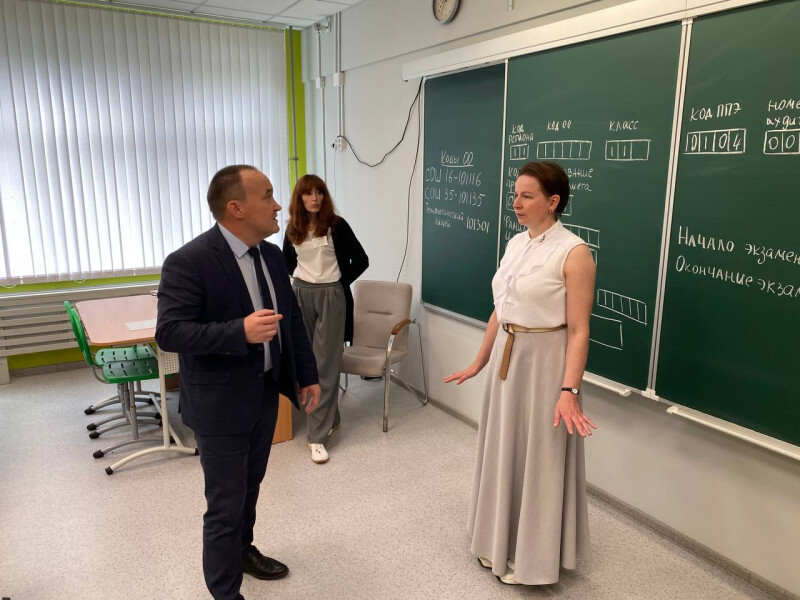 В ходе проверки Татьяна Козлова и Олег Холопов посетили классы и пообщались с детьми, дали участникам экзаменов ободряющие наставления.