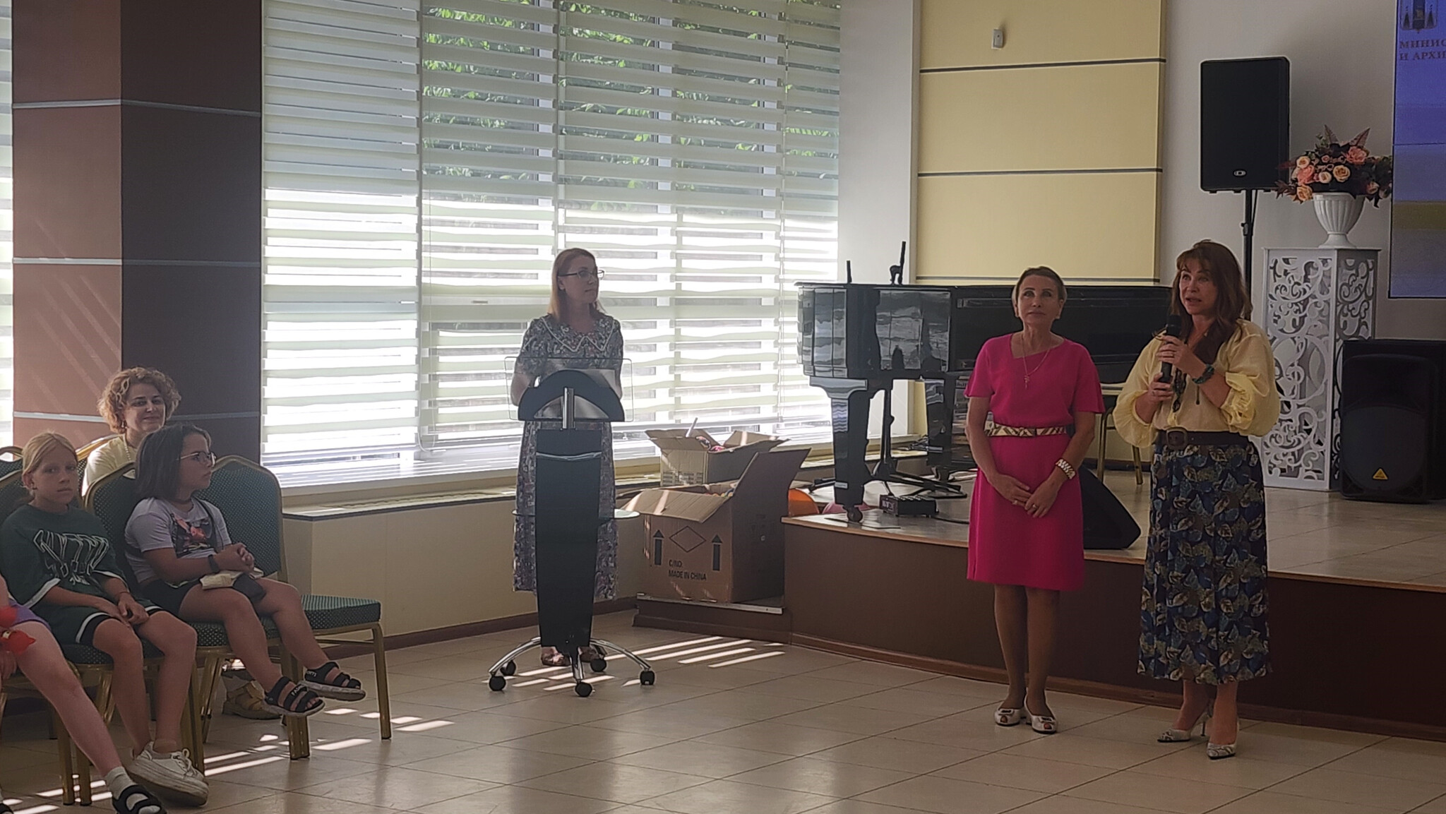 Любовь Устиновская с председателем городского отделения «Союз женщин России» Еленой Столяровой, директором областной универсальной научной библиотеки Еленой Павловой и президентом АНО «Центр инициатив «Сахалин-территория развития» Екатериной Быстровой для особенных ребят и их родителей организовали и провели акцию «Семья - основа счастья», посвятив ее празднику — Дню семьи, любви и верности.