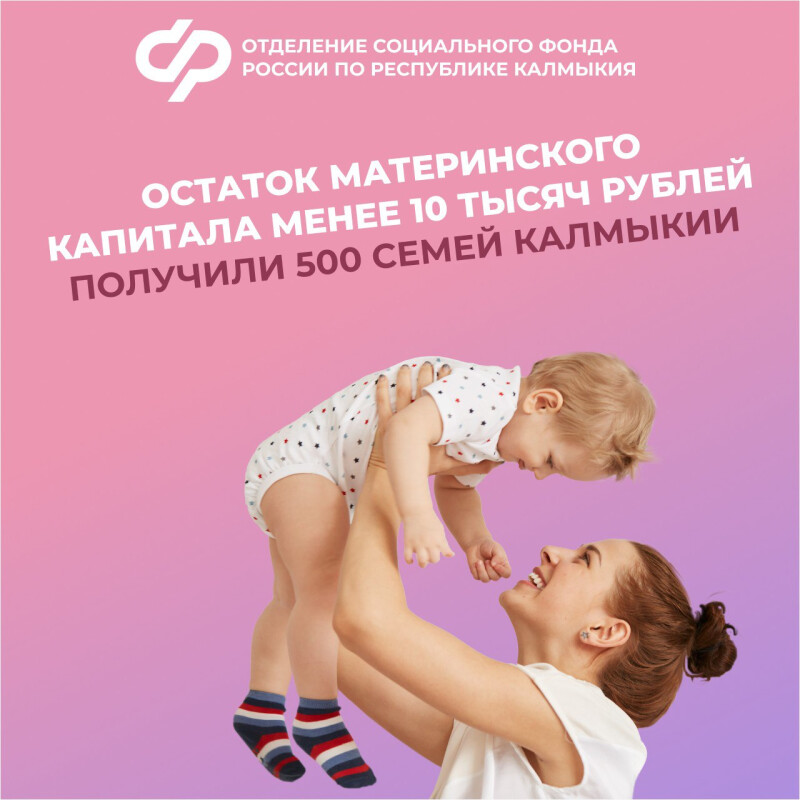 Владельцы сертификата на маткапитал могут получить остаток средств, если он не превышает 10 тысяч рублей. По данным Отделения СФР по Республике Калмыкия, такую единовременную выплату получили уже 500 семей региона.