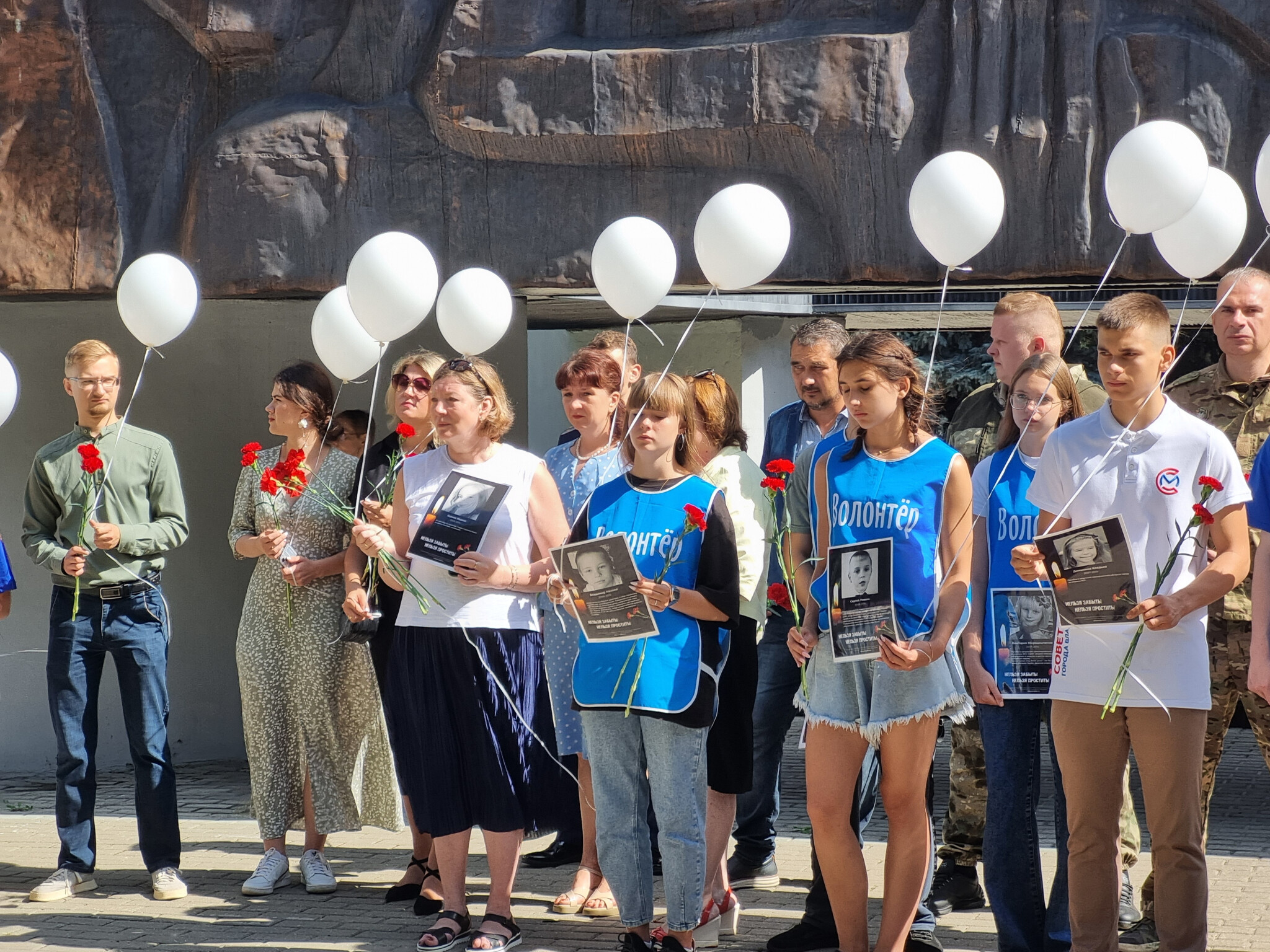 Сама акция была проведена на дорожках аллеи перед Дворцом. Уполномоченный призвала всех присутствующих помнить эти страшные события, в ходе которых погибли невинные дети. Ребята из детских лагерей прочли трогательные стихи. После этого все собравшиеся проследовали в аллею, где второй год подряд дети высаживают деревья в знак памяти. Юлия Раснянская помогла ребятам с посадкой туи декоративной.