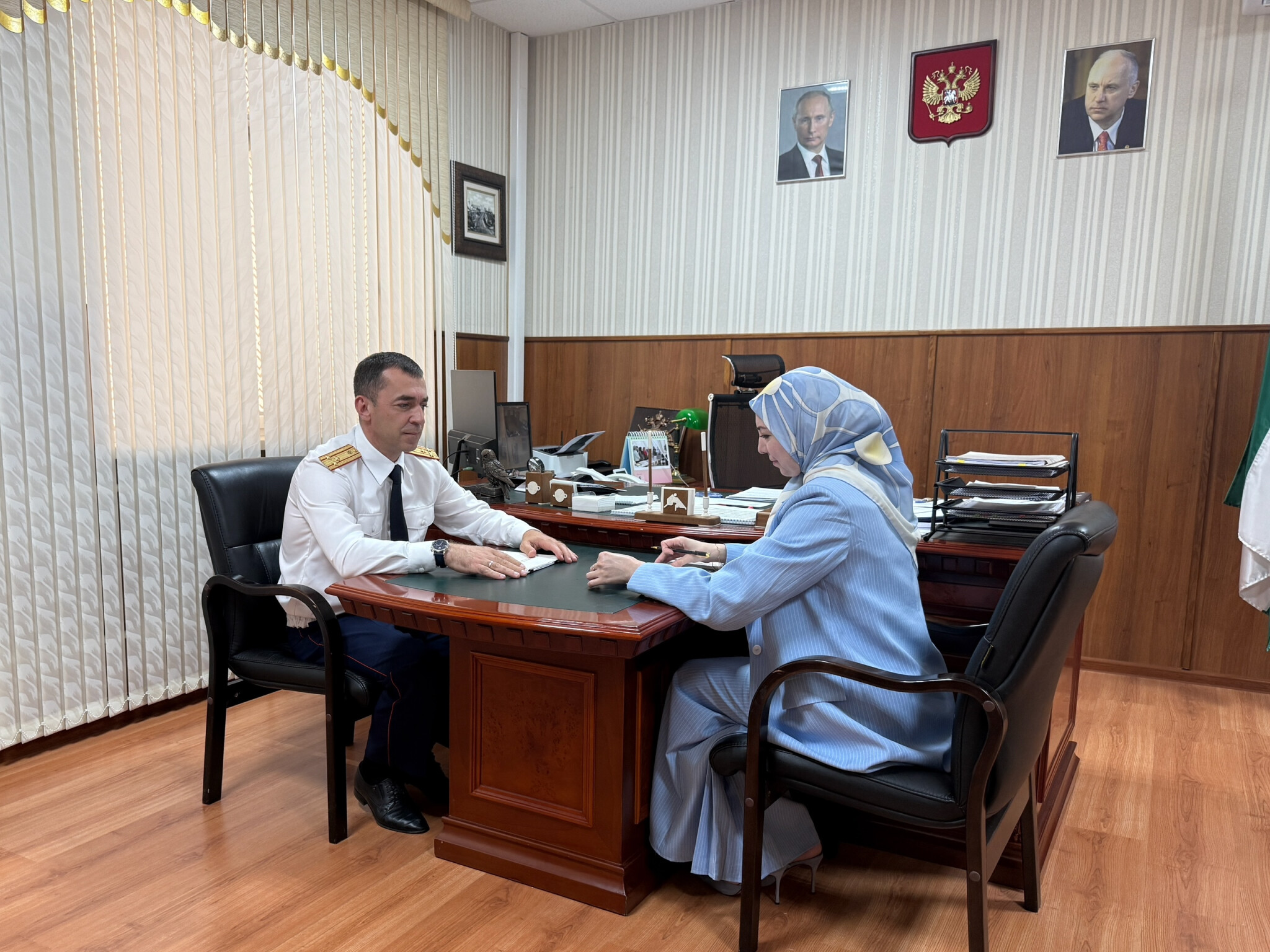 Сегодня состоялась рабочая встреча Уполномоченного по правам ребёнка в Республике Ингушетия Чахкиевой Заремы Султановны и руководителя следственного управления СК России по Республике Ингушетия Асхабова Ахмеда Магомедовича.