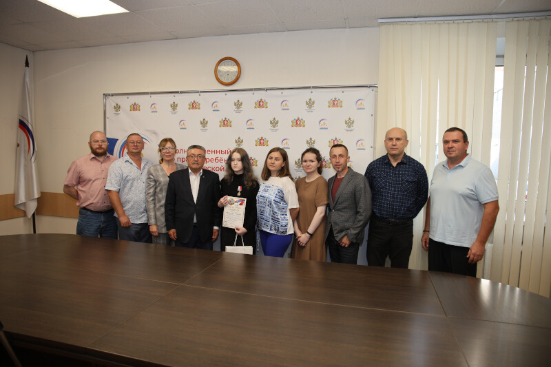 Один из сотрудников Аппарата Уполномоченного, а также человек, стоявший у истоков масштабирования проекта «Мой папа – Герой!» у нас в регионе, Ирина Харламова этим летом ушла на специальную военную операцию в Луганскую Народную Республику помогать раненым бойцам в госпитале. И сегодня детский правозащитник Игорь Мороков от своего лица и от лица Ольги Пакулиной в присутствии специалистов Аппарата Уполномоченного после небольшого напутственного слова вручил ее дочери памятную медаль, грамоту «Моя мама – Герой!» и небольшой подарок, который поможет девушке в ее дальнейшем жизненном пути.