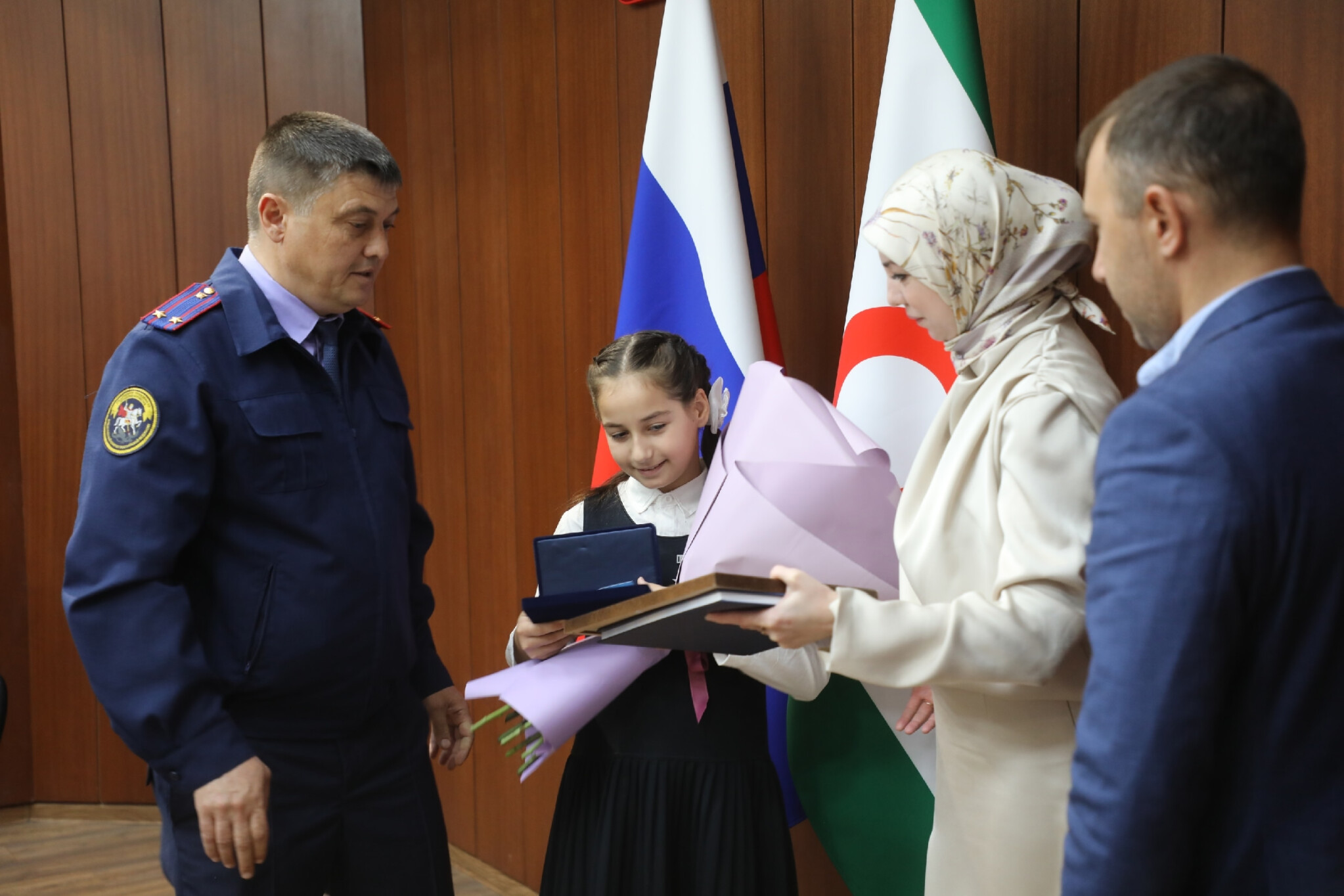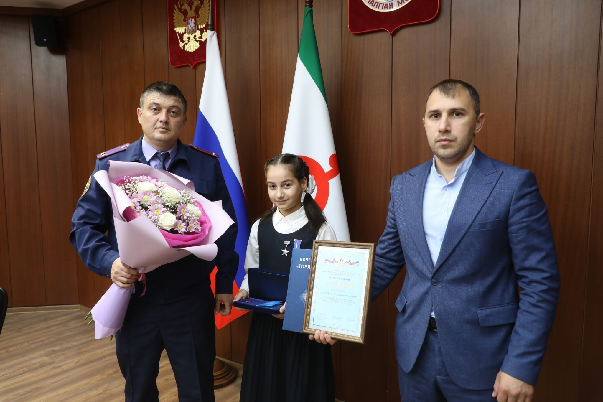 Центральным событием заседания стала торжественная церемония награждения Хадижи Дзауровой, учащейся Гимназии №1 г. Карабулак. Девочка проявила исключительное мужество и отвагу, спасая своего тонущего брата, став примером героизма и самоотверженности для сверстников. Ее поступок подчеркивает важность воспитания в детях чувства ответственности и готовности прийти на помощь в трудной ситуации.