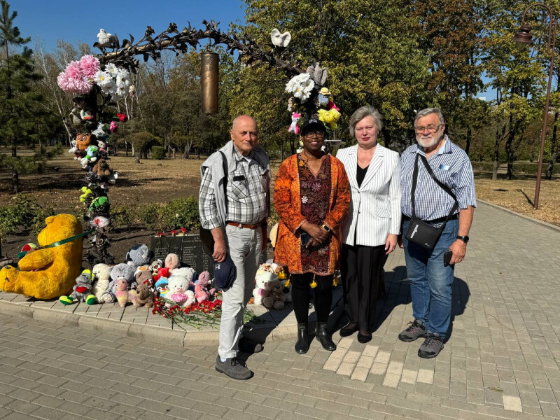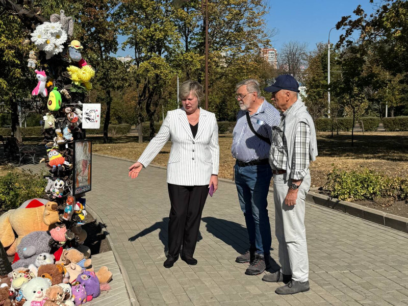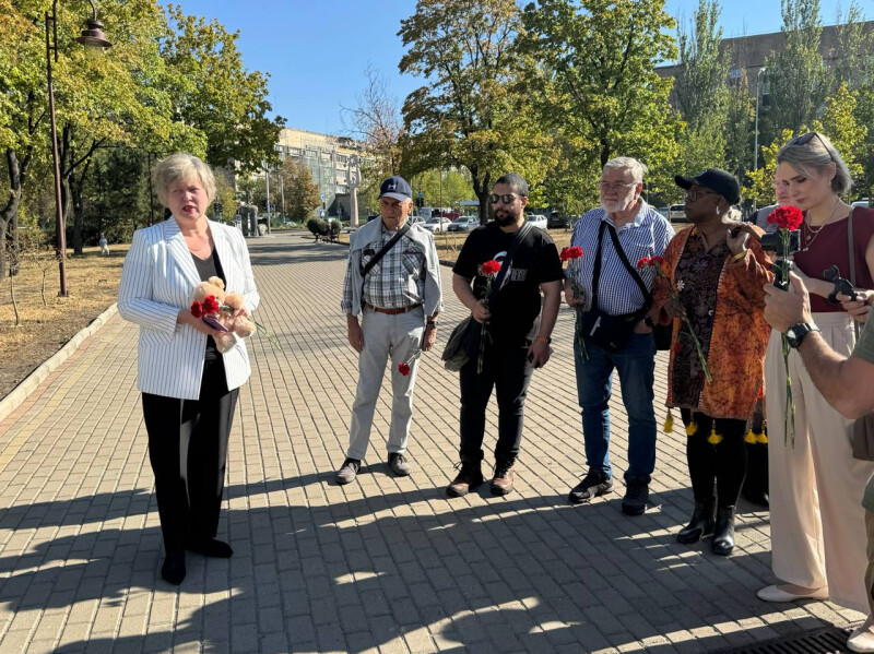 Уполномоченный по правам ребенка в Донецкой Народной Республике с делегацией иностранных журналистов посетили мемориальный комплекс «Аллея ангелов» в парке Победы города Донецка.