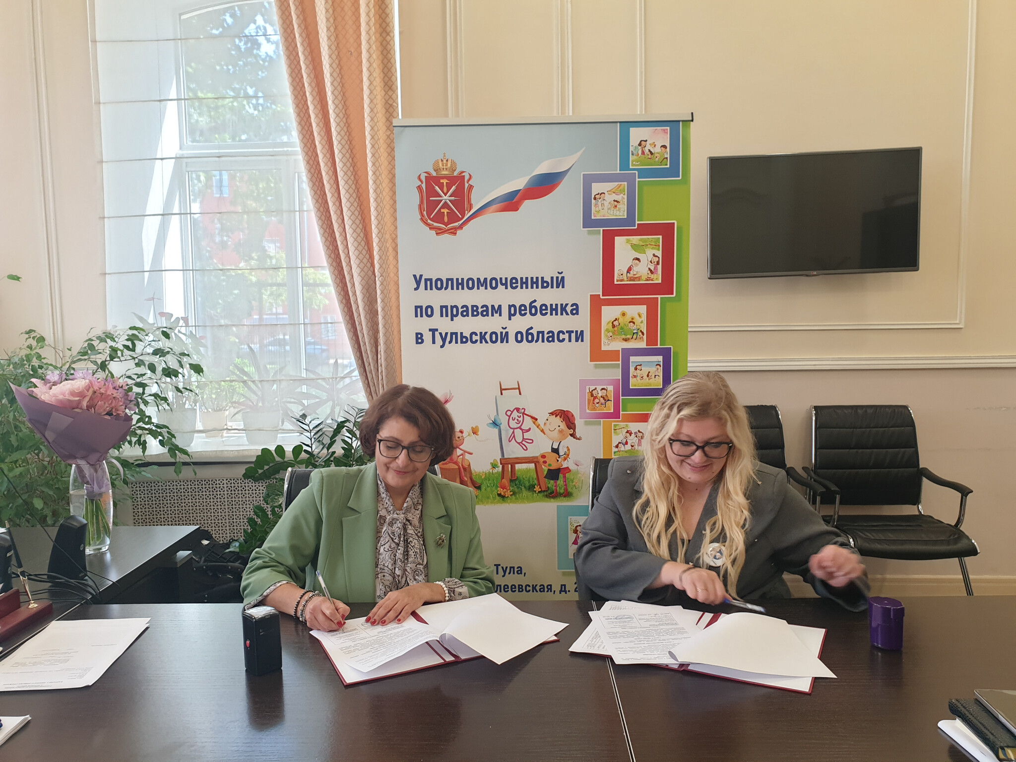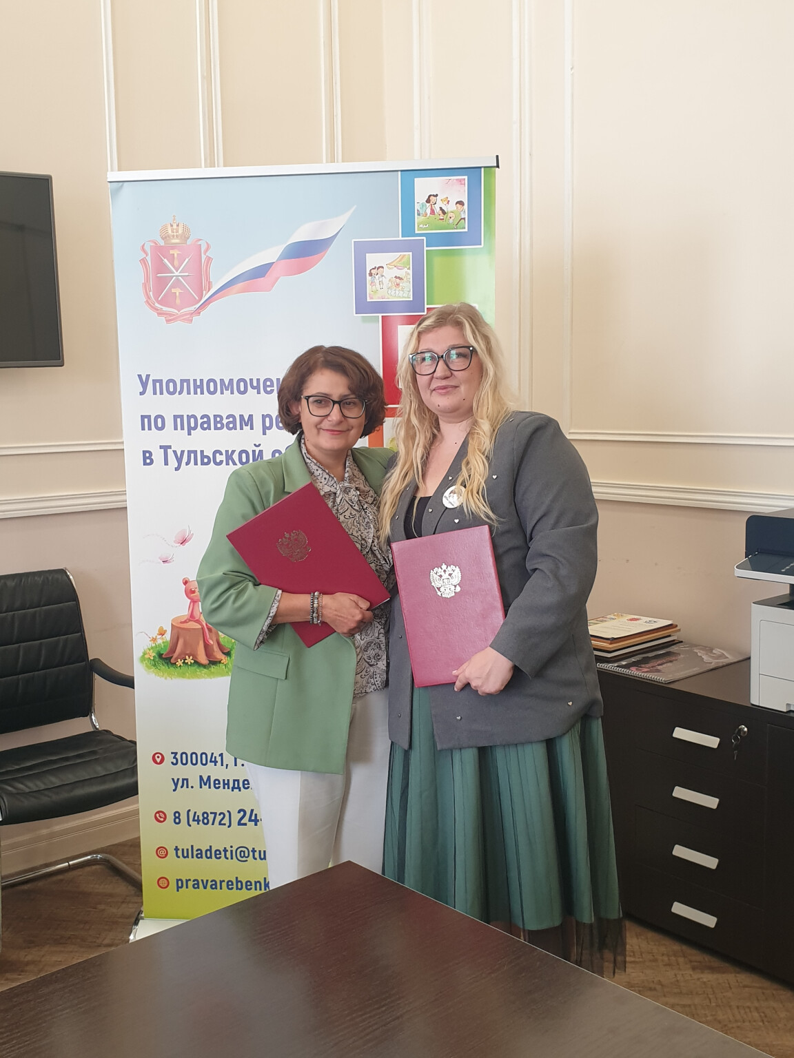 4 сентября состоялась рабочая встреча Уполномоченного по правам ребенка в Тульской области Наталии Зыковой и руководителя АНО «Жёны героев» Анастасия Кошерук. В ходе рабочей встречи было заключено соглашение о взаимодействии, которое направлено на консолидацию усилий региональной власти и общественности в деле защиты прав и интересов детей, особенно из семей участников специальной военной операции.