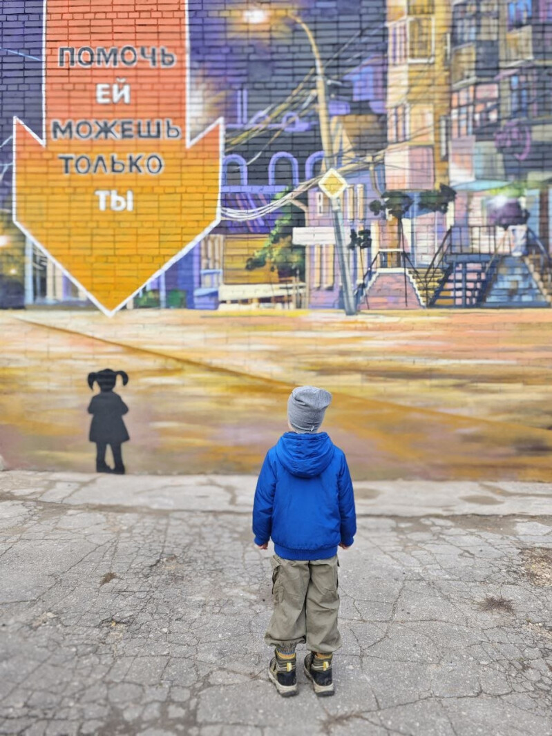 Идея создания подобных муралов в городах по всей стране возникла после случая в Пензе, когда трёхлетний ребёнок прошёл более полутора километров по улице и не был замечен прохожими. В рамках проекта уличные художники создали уникальные изображения на стенах зданий, призванные напомнить о важности своевременного реагирования на пропажу детей. На рисунках маленькая девочка и указывающая на неё большая стрелка с надписью «Помочь ей можешь только ты».