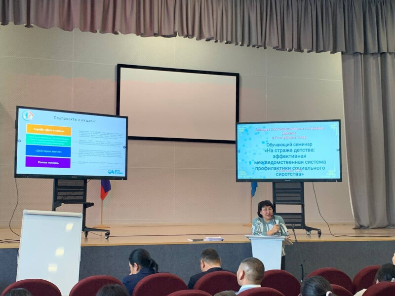 #Новостная_лента Второй обучающий семинар «На страже детства: эффективная межведомственная система профилактики социального сиротства» Сегодня новая школа сумона Балгазын Тандинского кожууна открыла свои двери для участников второго обучающего семинара, направленного на совершенствование межведомственного взаимодействия в сфере профилактики социального сиротства. Мероприятие организовано аппаратом Уполномоченного по правам ребенка в Республике Тыва совместно с коллегами из органов исполнительной власти. Выступления: Уполномоченный по правам ребенка в Республике Тыва Сенгии Саида Хертековна представила доклады: ⦁ О реализации стратегической программы в Республике Тыва «Дети в семье»; ⦁ По следам Всероссийского форума управленцев социальной сферы «ПРО-Детство», организованного Благотворительным фондом «Солнечный город» (г. Новосибирск). Даржаа Аржаана Николаевна, заместитель председателя администрации Улуг-Хемского кожууна по социальной политике, выступила с темой: ⦁ «Раннее выявление семейного неблагополучия и работа служб «Дети в семье» на муниципальном, поселенческом уровне. Изученные вопросы: ⦁ Семейно-ориентированный подход в работе с семьями, находящимися в трудной жизненной ситуации и в социально опасном положении; ⦁ Организация работы муниципальных консилиумов по рассмотрению обоснованности нахождения детей в специализированных стационарных учреждениях; ⦁ Межведомственное взаимодействие при социальном сопровождении семей; ⦁ Вопросы восстановления родительских прав и вывода детей из госучреждений в кровные семьи; ⦁ Профилактика семейного неблагополучия и социального сиротства в общеобразовательных организациях республики. В семинаре приняли участие руководители и специалисты органов и учреждений системы профилактики социального сиротства Тандинского, Эрзинского, Тес-Хемского и Тере-Хольского кожуунов. Всего 53 участника. Выражаем благодарность руководству администрации Тандинского кожууна и коллективу школы-сумона Балгазын за поддержку в проведении семинара. Следующие семинары запланированы 27 и 28 ноября в западных кожуунах. #УполномоченныйТыва #Профилактикасоциальногосиротства